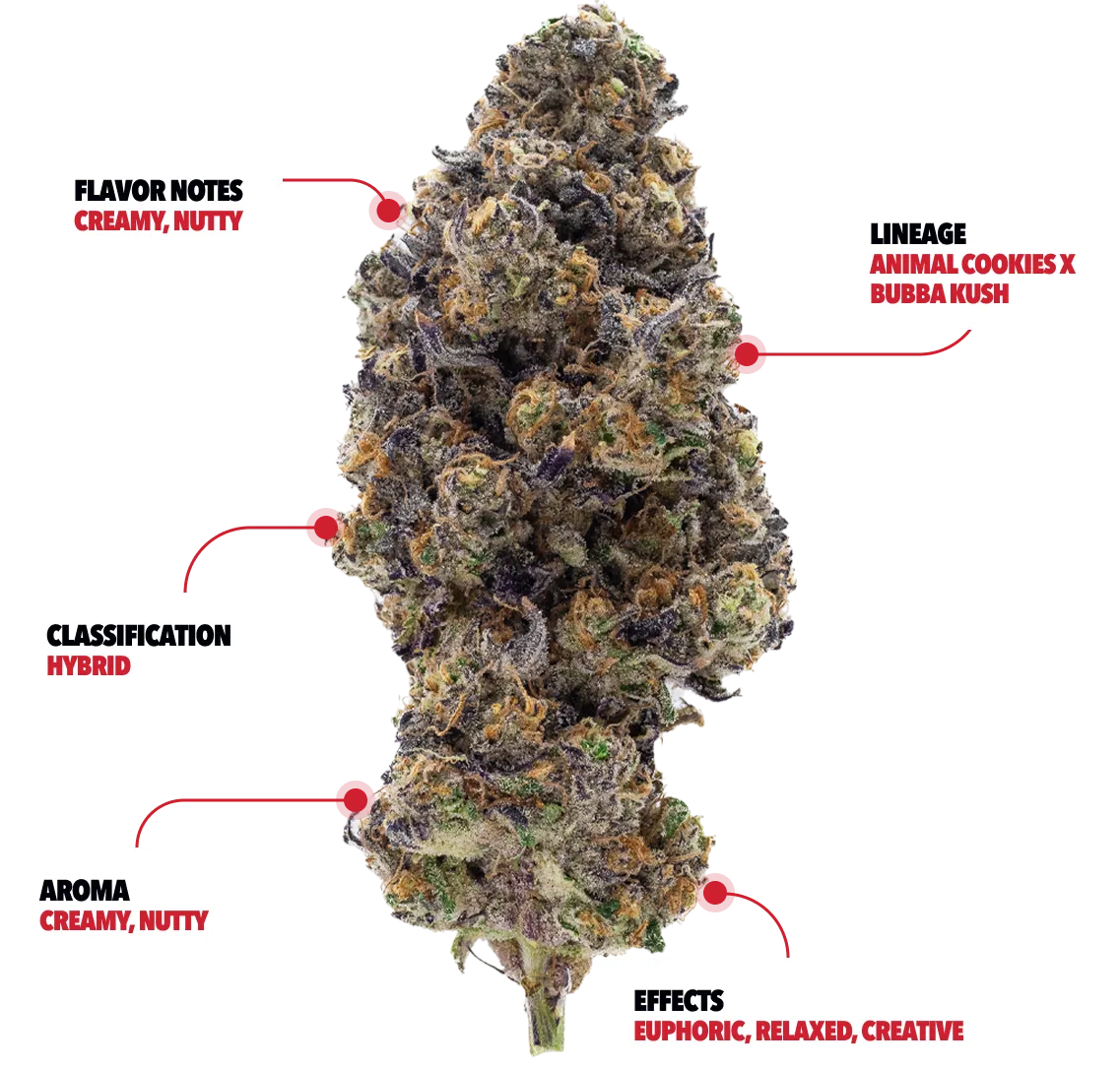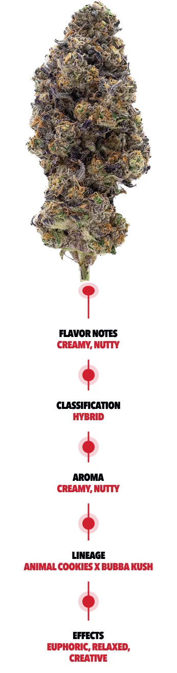 BADMAN is an indica heavy hybrid that was created by crossing the Animal Cookies strain with Bubba Kush, combining to create a delicious nutty cookie flavor that is paralleled by its equally impressive potency. Users will experience an initial strong rush of euphoria upon smoking which slowly but surely winds its way through the body and leaves the user in a complete state of relaxation and sedation, making this a perfect choice as a dessert for the end of the night.