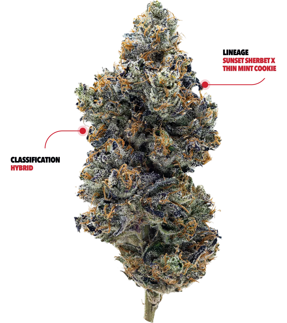 BANGA is a variation of the always popular Gelato 33 strain, a slightly indica leaning hybrid that is created when the Sunset Sherbet and Thin Mint Girl Scout Cookies strains are crossed. Known and revered for possessing an insanely delicious flavor profile, BANGA stays true to its origins by packing a heavy punch of fruity sherbet with notes of thin mint cookies also commonly detected on the exhale. Not only sought after due to its flavor and aroma profile, the BANGA possesses a heavy head high that makes this a perfect choice for winding down the day or night.