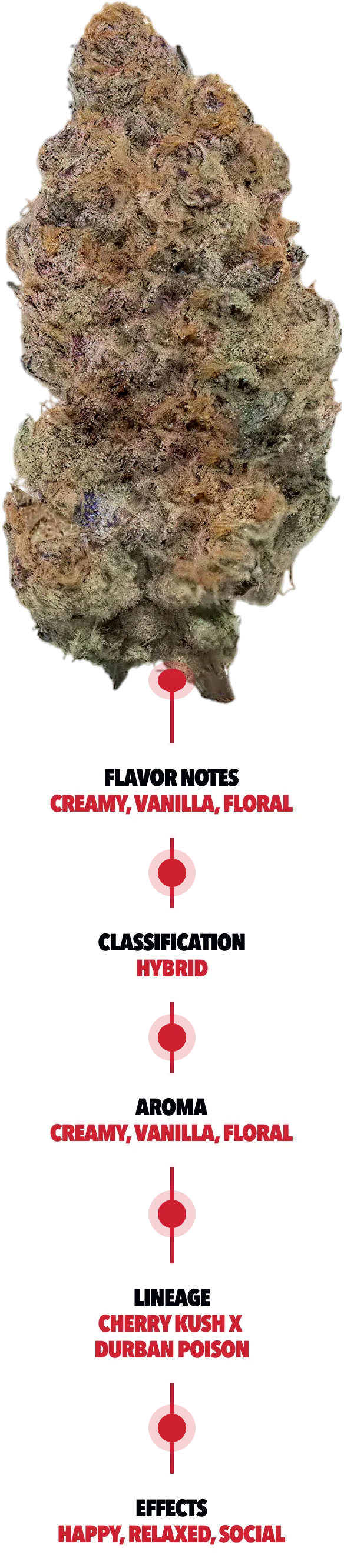 The BLUBERI tastes like blueberries! An indica dominant hybrid, BLEM BLUBERI is a cross between the Thin Mint Girl Scout Cookies and the DJ Short Blueberry strains. The fusion of these popular strains together creates a perfect balance of potency and flavor—the high THC percentage combined with the delicious taste of blueberries makes this a highly sought after hybrid. Even though it is an indica dominant hybrid, the high is characterized as initially being very uplifting and energizing while slowly and smoothly transitioning to a state of relaxation and euphoria. With users frequently experiencing couchlock and the munchies, the BLUBERI is ideal as a treat for winding down the day.